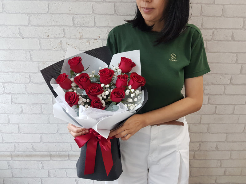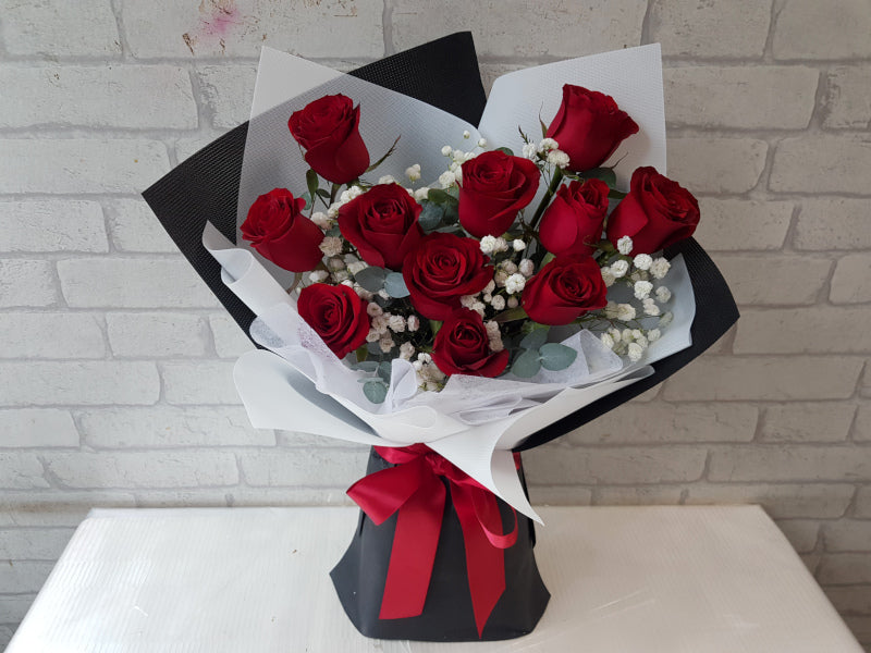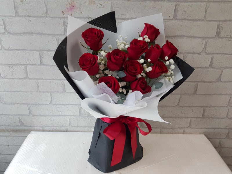 Make a classic and heartfelt statement with this charming standing bouquet of 5 premium Red Roses. Special design that symbol of love and devotion in a modern, upright presentation.