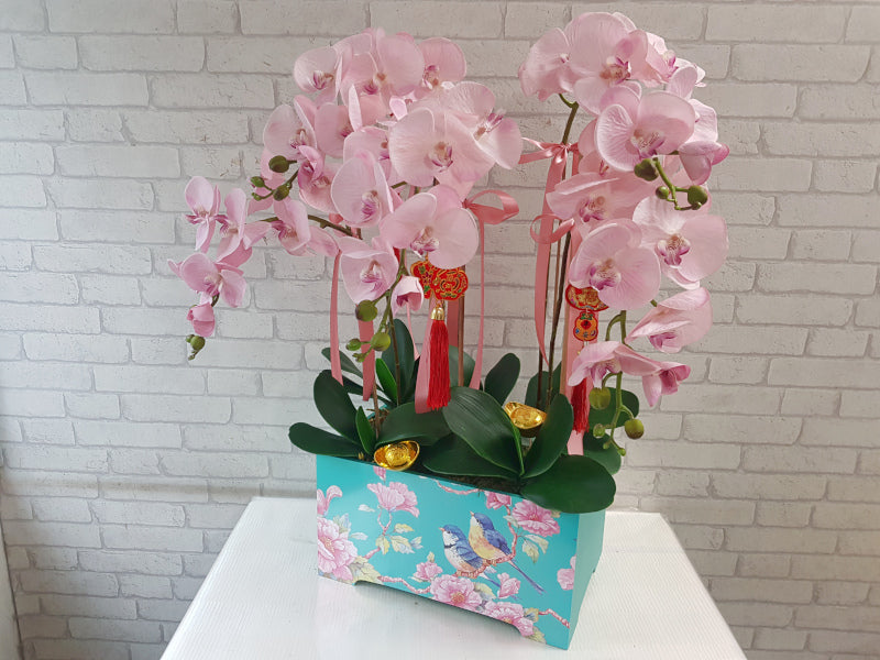 Elegant Artificial Phalaenopsis orchids presented in a festive CNY vessel, perfect for adding timeless charm to your Chinese New Year celebrations.